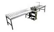 table à rouleaux pour coudre des bâches jusqu´à 6 mètres de long. Inclus : 12 mètres de table, rouleaux, bâti, 4 entonnoirs et guides pour joindre : draps, ourlets,… Pince de fixation frontale de la bâche déplaçable grâce au guide.